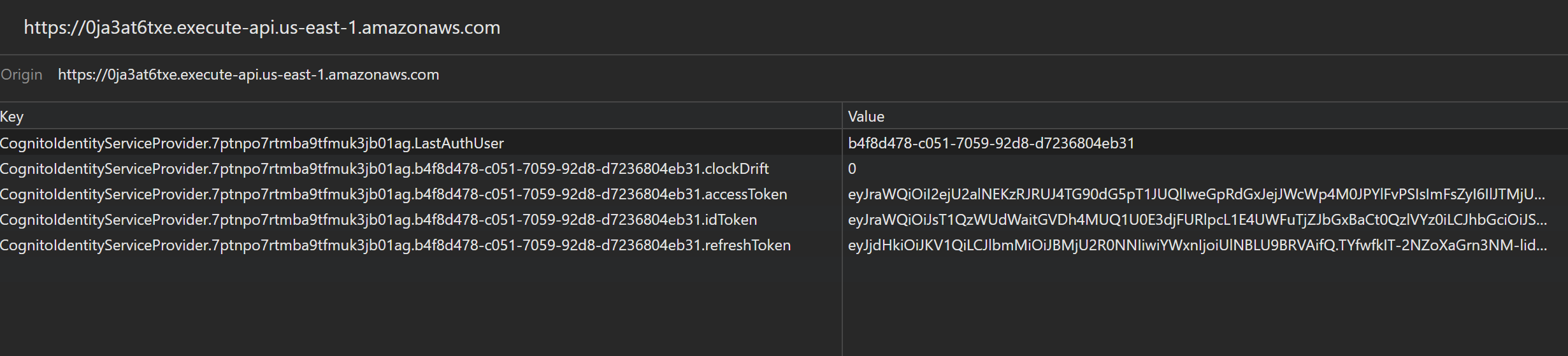 LocalStorage를 확인하면 accessToken, idToken, refreshToken가 담겨있는 것을 볼 수 있다.