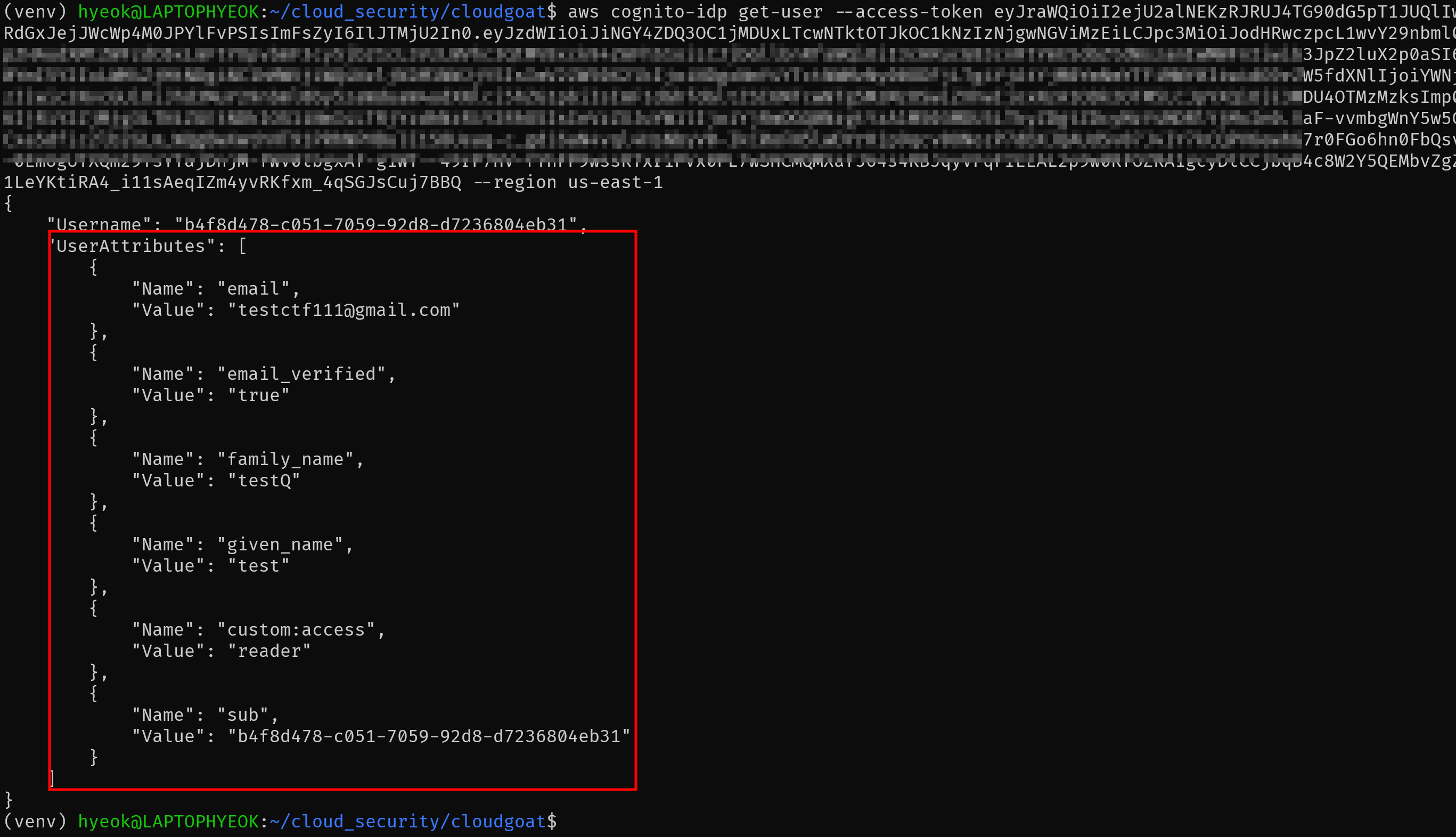 aws cognito-idp get-user --access-token [accessToken] --region us-east-1