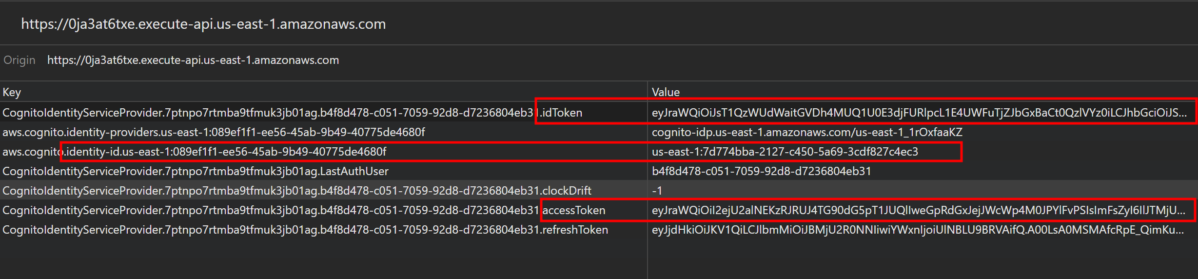 --logins "cognito-idp.us-east-1.amazonaws.com/{UserPoolId}={idToken}" \