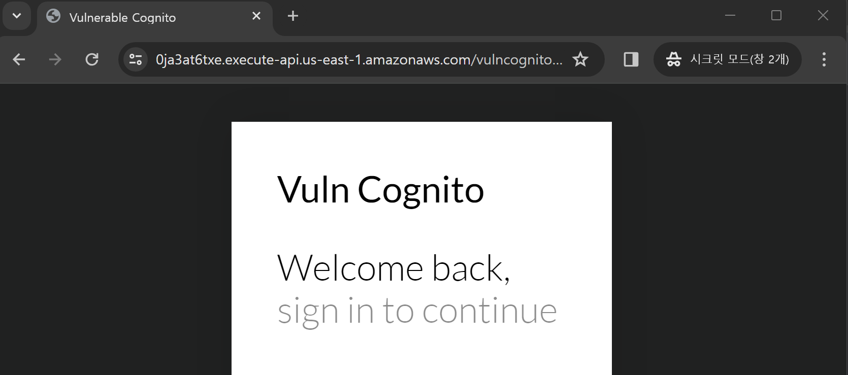 solutions 디렉토리 내의 vulnerable_cognito 시나리오 제작 Terraform이 실행된다.