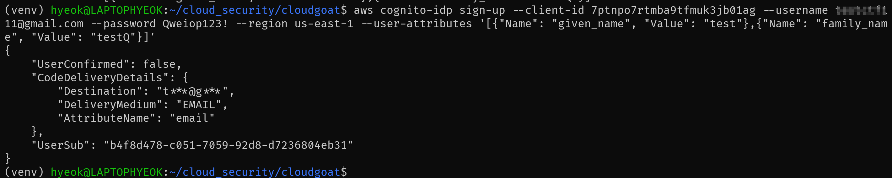 2. 획득한 ClientID를 바탕으로 CLI를 통해 임의의 이메일을 인증 (sign-up)