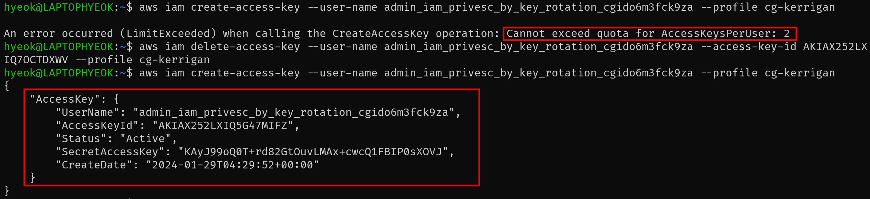 aws iam create-access-keys --user-name [user명] --profile cg-kerrigan