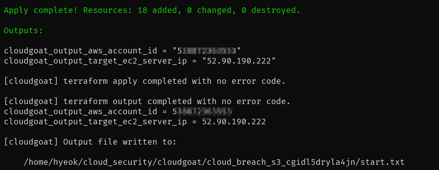solutions 디렉토리 내의 cloud_breach_s3 시나리오 제작 Terraform이 실행됨