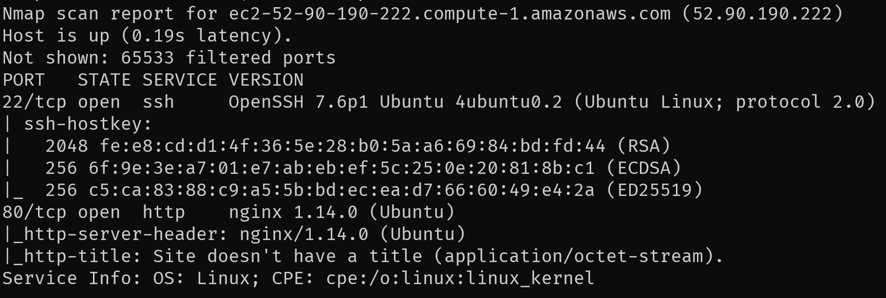 주어진 정보로는 인스턴스 IP 단 한개이다. 먼저 포트스캔부터 진행해 보았다.