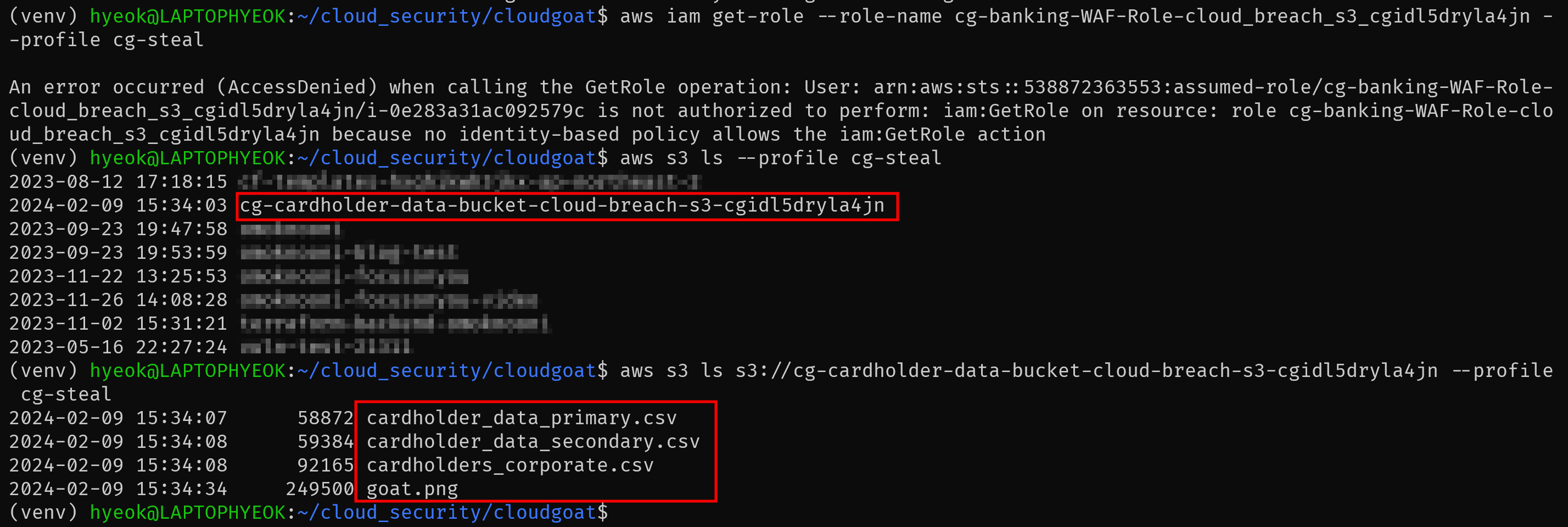 이제 탈취한 IAM Role로 시나리오의 목표인 S3에 접근해보도록한다.