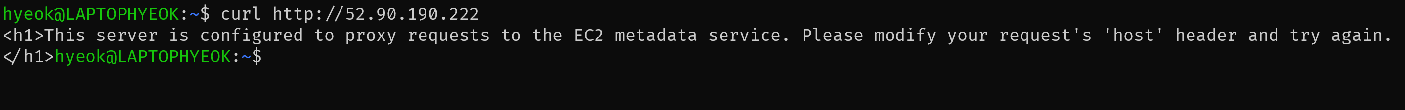 이 서버는 EC2 메타데이터 서버로 request를 전송하도록 구성되었다고 한다. 그리고 host 헤더를 변조하라고 너무 대놓고 나와있다.