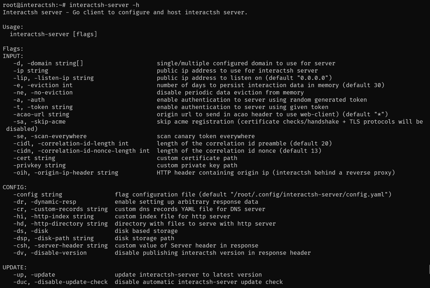 interactsh 서버가 설치되면 아래 커맨드로 서버를 구동시킬 수 있다.