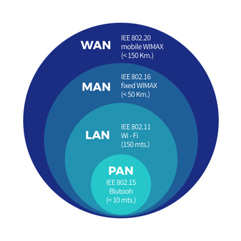 네트워크의 큐모에 따라 PAN, LAN, MAN, WAN 등으로 나뉘어진다.