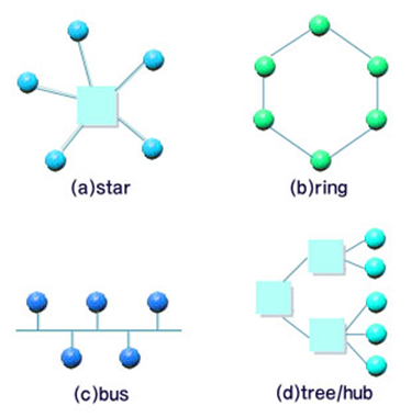 - LAN을 구성하는 방식으로 여러가지 토폴로지들이 존재한다.