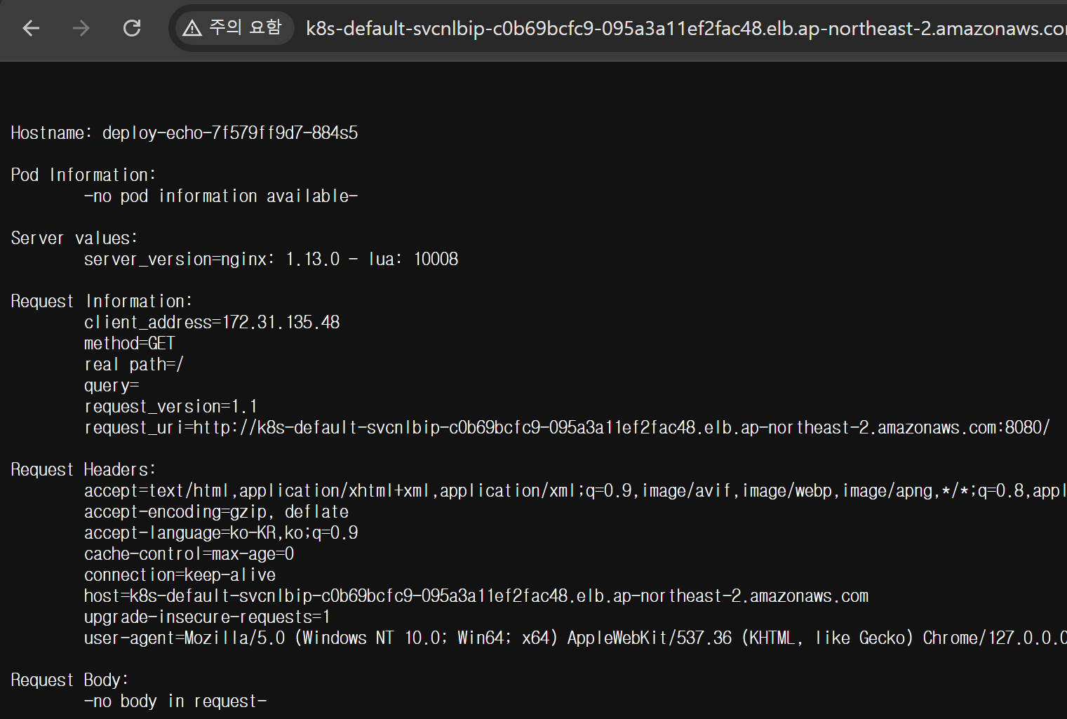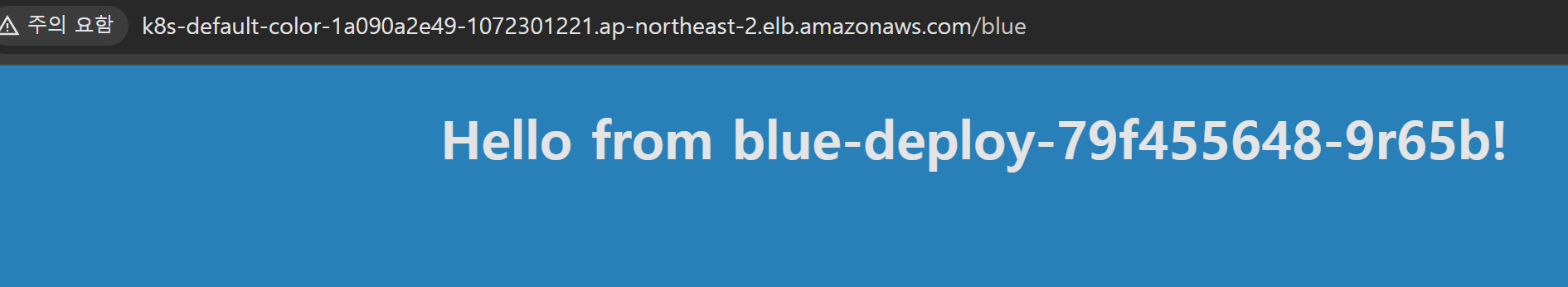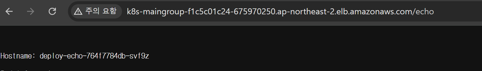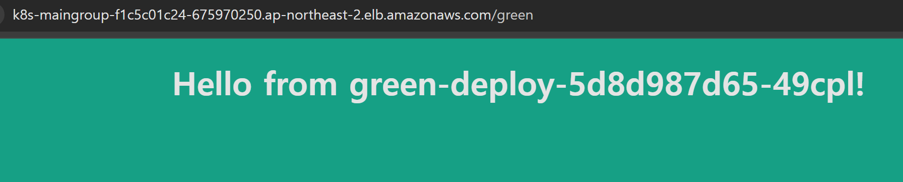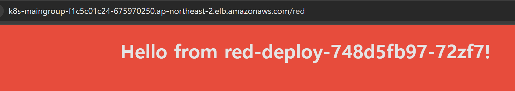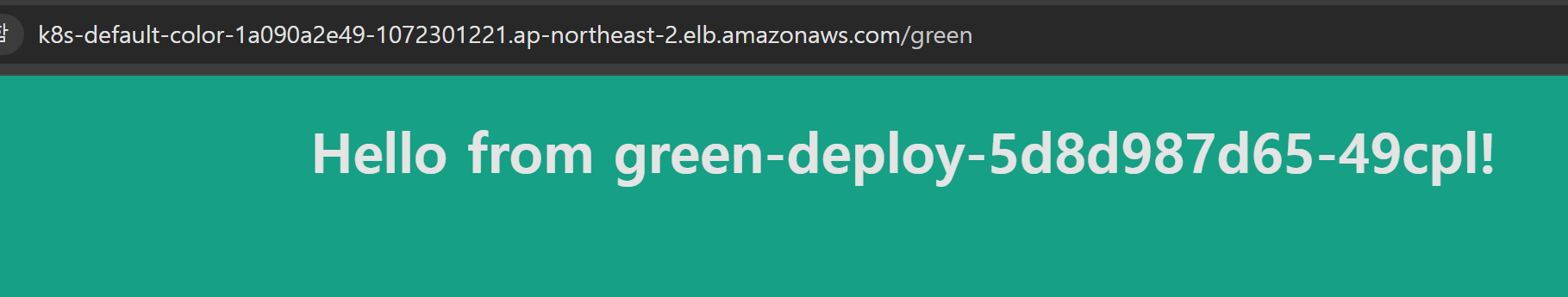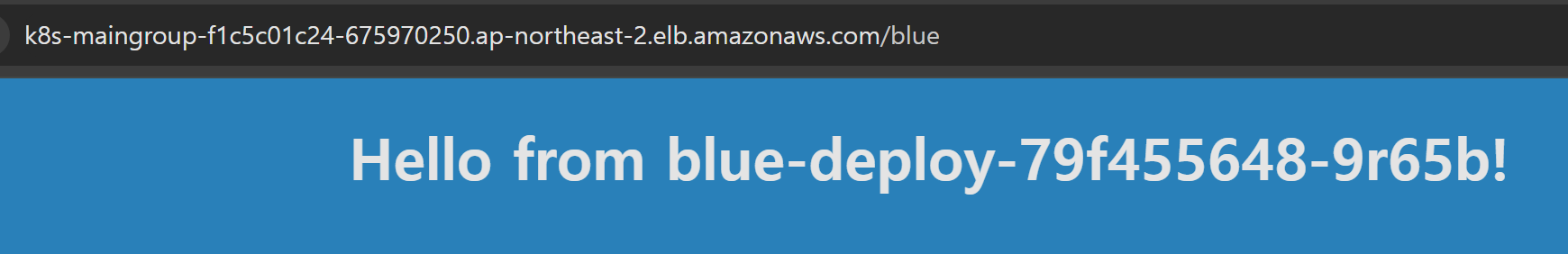 발급된 Load Balancer URL로 접속하면 내부에 배포한 pod의 Application에 접근할 수 있는 것을 알 수 있다.