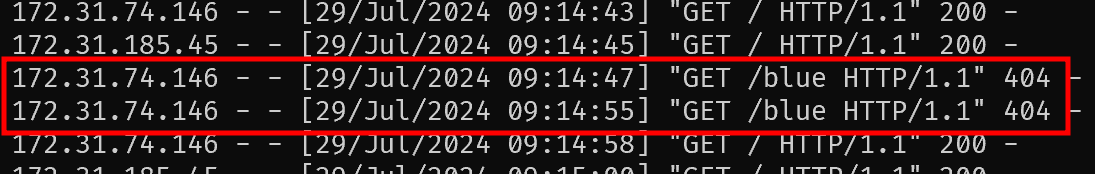 테스트로 가져온 이미지는 root path에 대한 경로만 존재해, ALB에서 각 rule의 path(/blue, /green)으로 들어온 요청을 처리하지 못한 것이다.