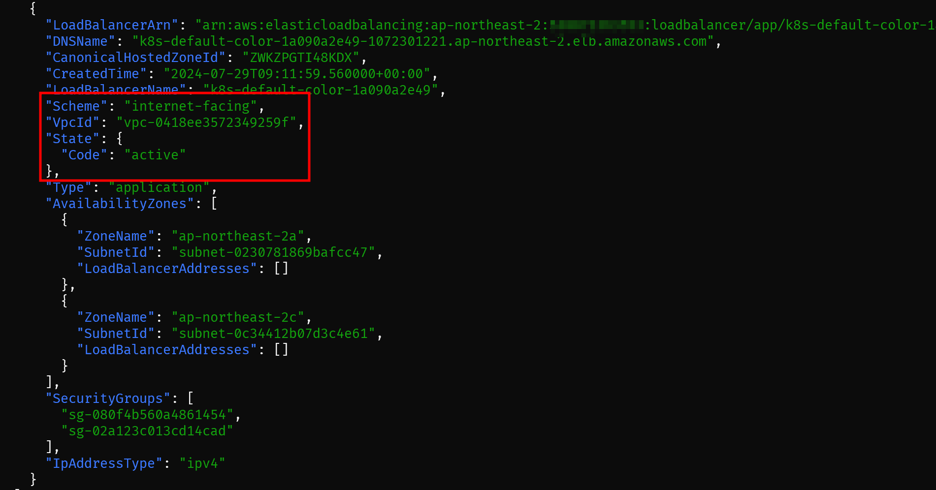 aws elbv2 describe-load-balancers --region ap-northeast-2 | jq