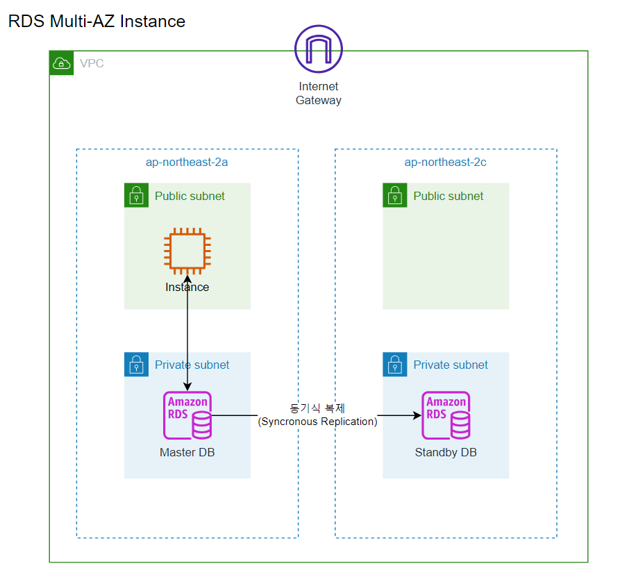 AZ에 걸쳐 생성된 DB끼리는 동기식 복제(Synchrnous replication)를 통해 내용 동기화를 진행한다.