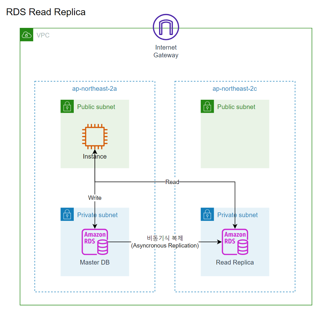 Master와 같은 AZ에 Read Replica를 구성할 수 있고, 다른 AZ에 Read Replica를 구성할 수도 있다.