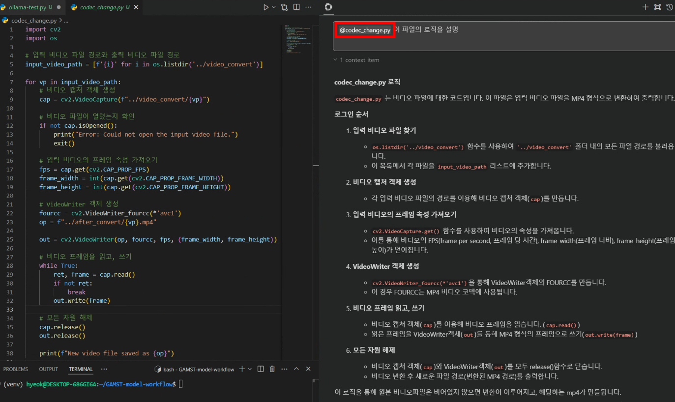 Ollama와 플러그인 하나로 chat, autocomplete 기능을 사용할 수 있다는 점에서 인상깊었다. 특히 이전에 사용해본 Cursor IDE와 상당히 유사한 UI나 구조라서 편하게 이용할 수 있었다.