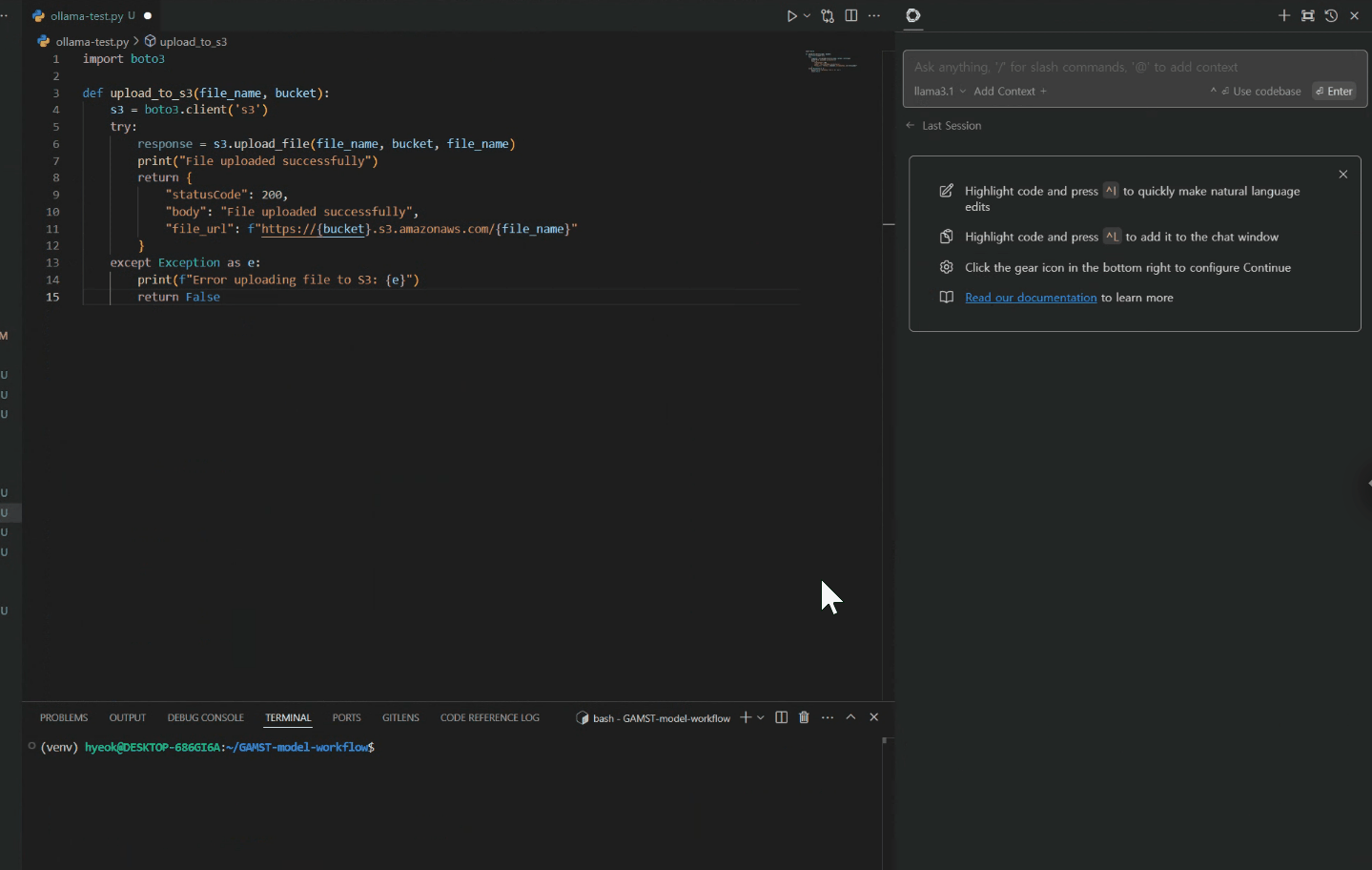 오픈소스 AI-code assistant, LLM을 연결해 커스텀 code completion과 chatting을 이용할 수 있는 툴이다.
