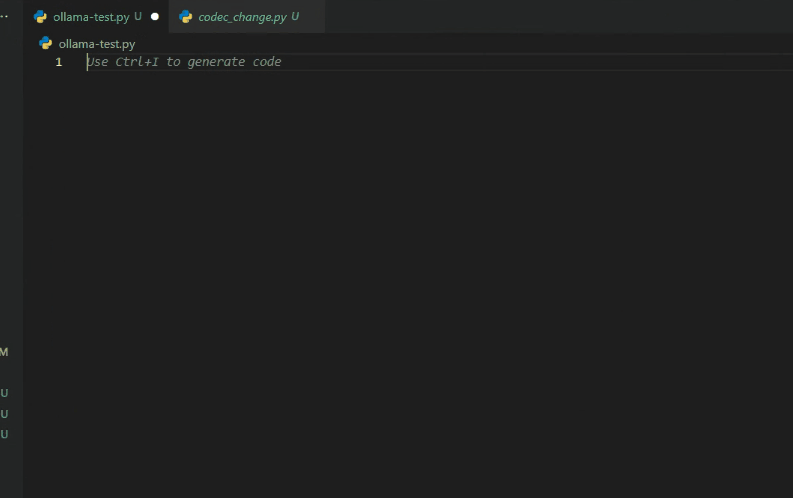 `Ctrl+I`로 prompt를 입력하여 코드를 생성하도록 한다. 생성된 코드는 Accept하거나 Reject할 수 있다.