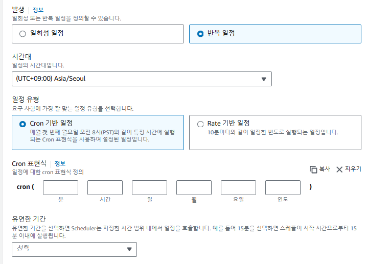 반복 일정은 Cron 표현식과 rate 표현식을 구성해 작성할 수 있다.
