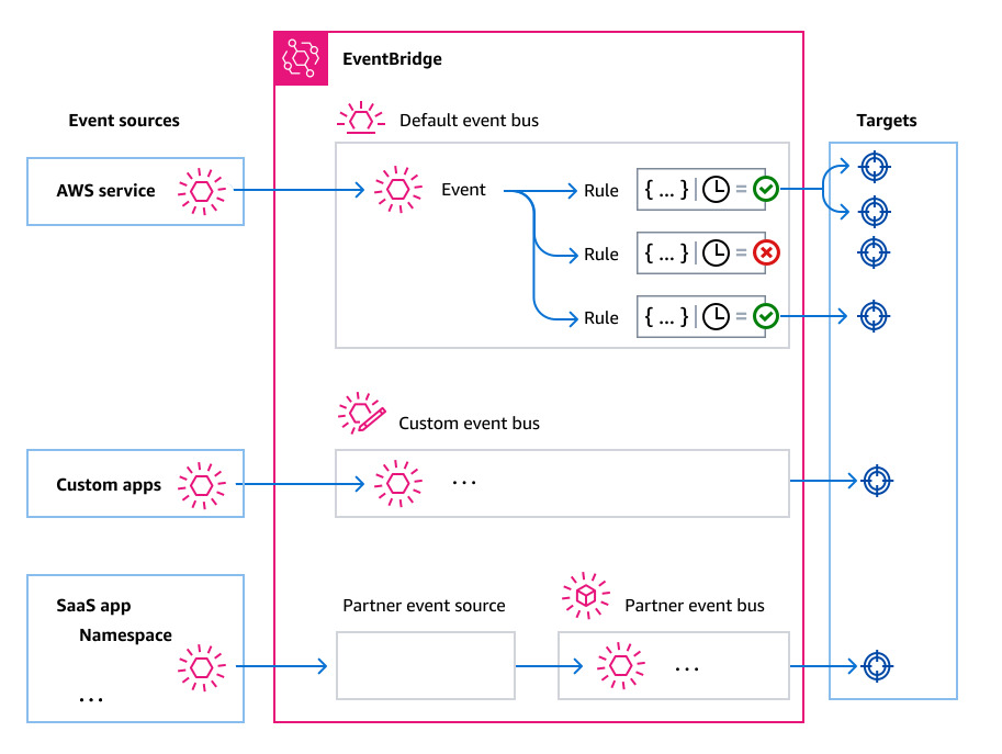 AWS 서비스와 더불어 서드파티 SaaS App, 커스텀 App들로 부터 발생하는 이벤트를 소스로 사용할 수도 있다.