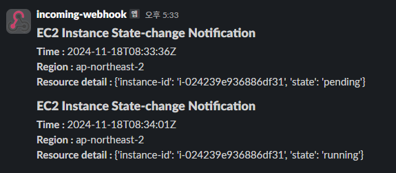 Rule을 모두 구성한 뒤, 실제로 임의의 인스턴스를 생성하고 종료하면 Eventbridge Rule을 바탕으로 동작하는 것을 확인할 수 있다.