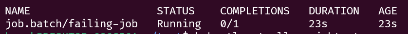 이 Job을 실행 후, 계속 모니터링해보면 Job에 의해 pod들이 계속 생성되고 Completion되다가 어느 순간 Job이 Fail 처리되는 것을 볼 수 있다.