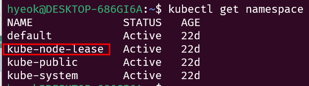 쿠버네티스 클러스터에는 기본적으로 `kube-node-lease`라는 네임스페이스가 기본적으로 존재하는데, 이 네임스페이스에는 클러스터에 연결된 모든 노드들의 상태(`.status`)를 업데이트하는 lease가 있다.