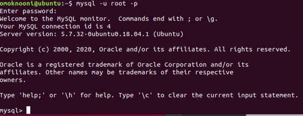 $ sudo mysql -u root