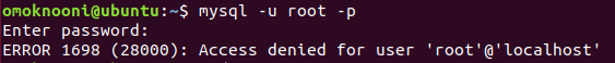 설치 후 sudo 권한을 사용하지 않고 mysql -u root로 접속할려고 시도하면 에러가 발생