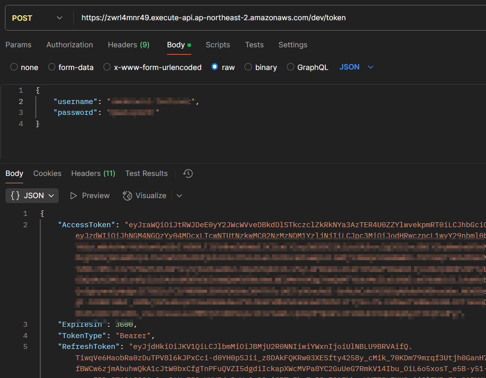 이렇게 Cognito User Pool ID와 Client ID를 생성하게 되었고, 이를 통해 인증을 수행하고 토큰을 발급해주는 엔드포인트를 만들어본다.