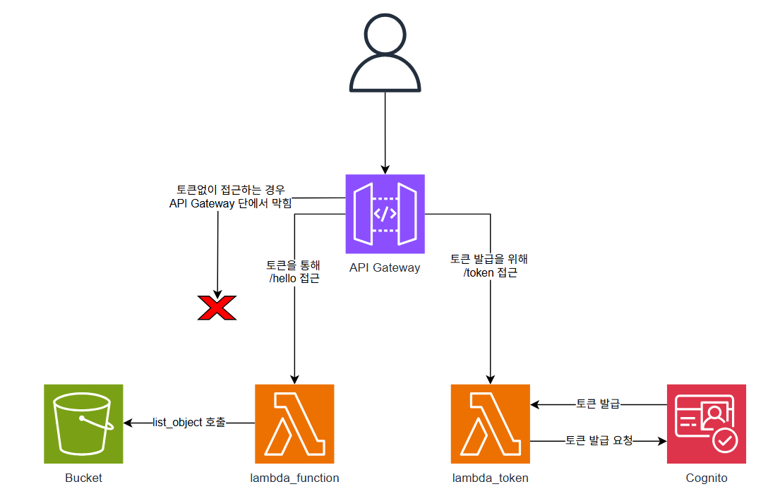 이번에는 Lambda와 Integration된 API Gateway와 Cognito를 통해 JWT 토큰을 발급받아 API gateway의 API들에 접근하도록하는 아키텍처를 구성해보도록 한다.