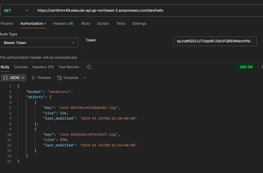 이러면 authorizer와 연결된 method로 유입되는 request들은 Cognito에서 발급받은 토큰을 통해 Cognito User pool에 존재하는 사용자인지를 검증하게 된다.