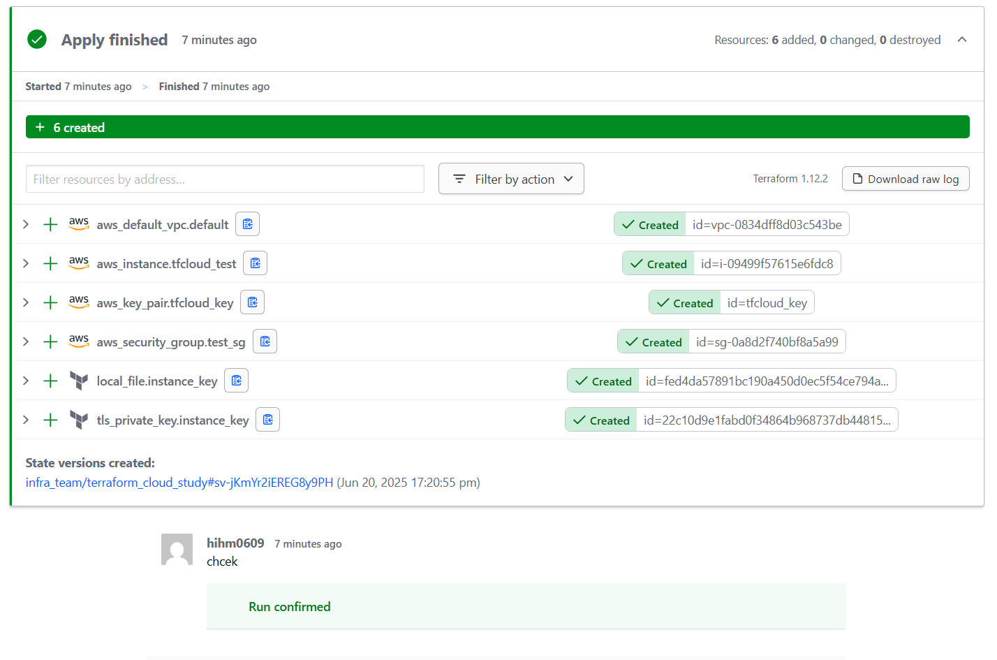 이를 통해 인프라 state가 Terrform cloud의 workspace를 통해 관리되는 것이다.