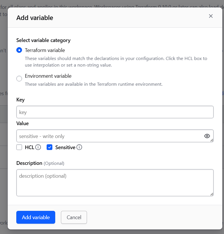하나 짚고 넘어갈 점은, AWS 리소스에 접근하기 위해 액세스 키를 워크스페이스 변수로 직접 등록했다는 사실이다. 직접 사용하는데에는 문제가 없지만, 이러한 장기 자격증명은 관리 부담이 크기 때문에, 가능하다면 임시 자격증명 방식을 활용하는 것이 더욱 바람직할 것이다.
