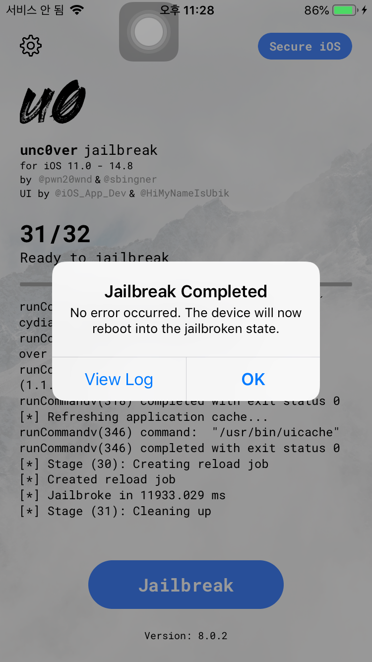탈옥 디바이스 및 버전 : 아이폰 6(ios 12.5.5), unc0ver v8.0.2