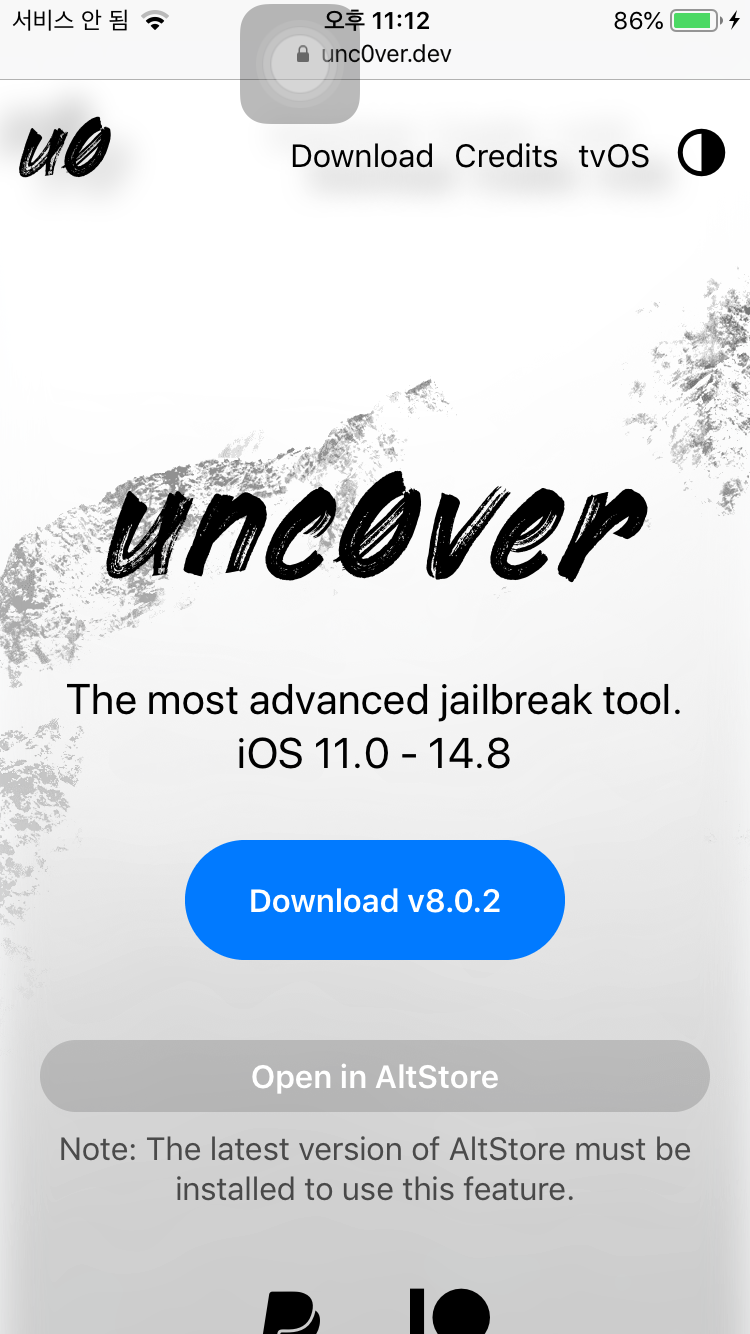 5. 사파리(디바이스)에서 unc0ver 공식 홈페이지 접속 후 설치