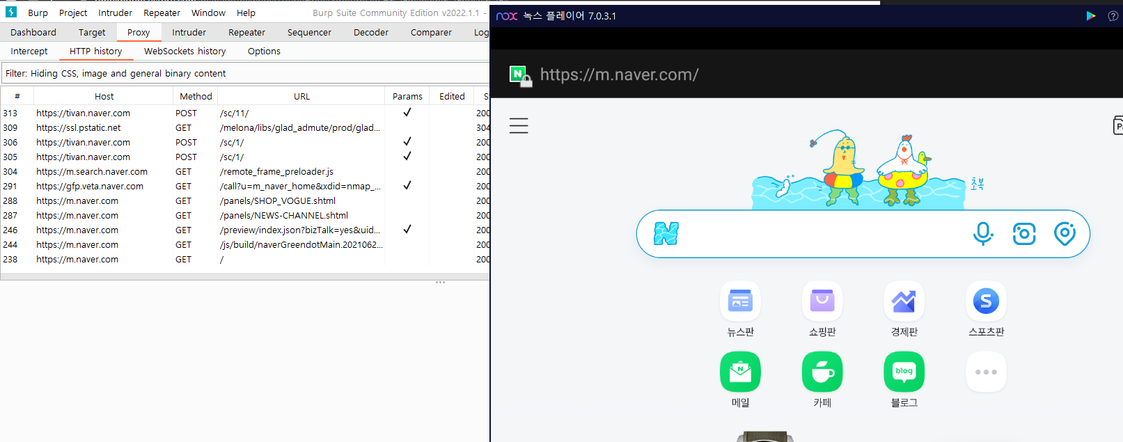 - nox, Burp Suite 실행