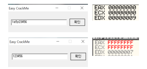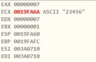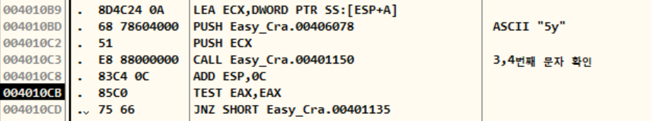 여기서는 입력한 문자열의 3번째 문자부터 끝까지 ECX에 들어가는 것을 볼 수 있는데, 이 이후 "5y"와 ECX가 PUSH된다