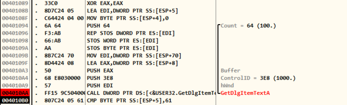 먼저, 004010B0에서 CMP문이 보인다