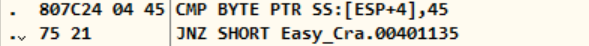 마지막으로, [ESP+4]와 0x45를 비교하는 구문이 있다