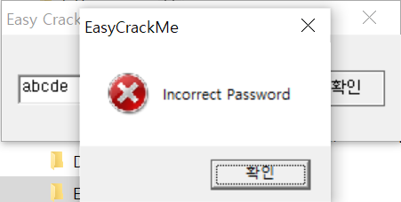 임의로 abcde를 넣으면 'Incorrect Password'가 뜨며 중단된다