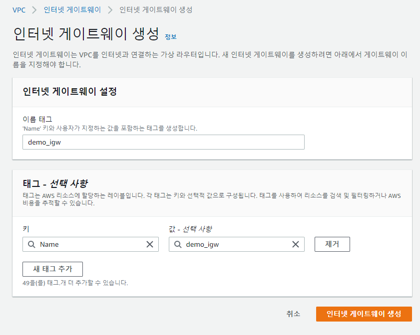 2-1. 인터넷 게이트웨이 생성