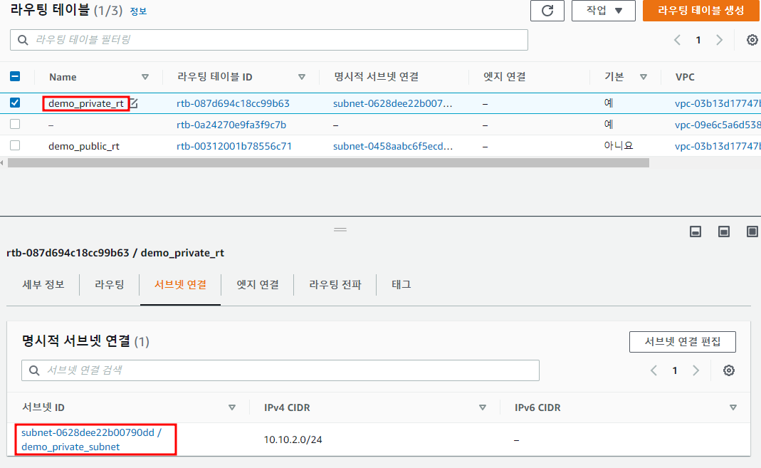 Private subnet : demo_private_subnet | ap-northeast-2a | 10.10.2.0/24