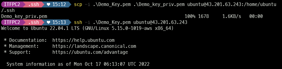 bastion host에서 접속하는 것이므로 키 페어를 bastion host로 가져와야 한다.