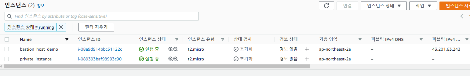 다만 이 방법의 경우 bastion host에 private instance의 키 페어 파일을 저장해둬야 하고, ssh 접속을 2번 해줘야 한다는 번거로운 점이 있다.