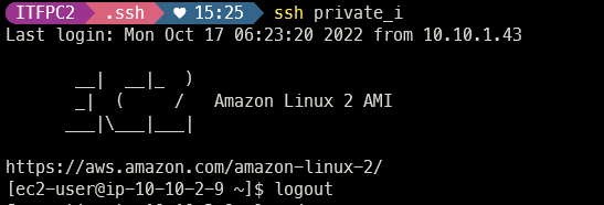 bastion host를 통해서 private subnet의 인스턴스까지 잘 접속한 것을 확인했다.