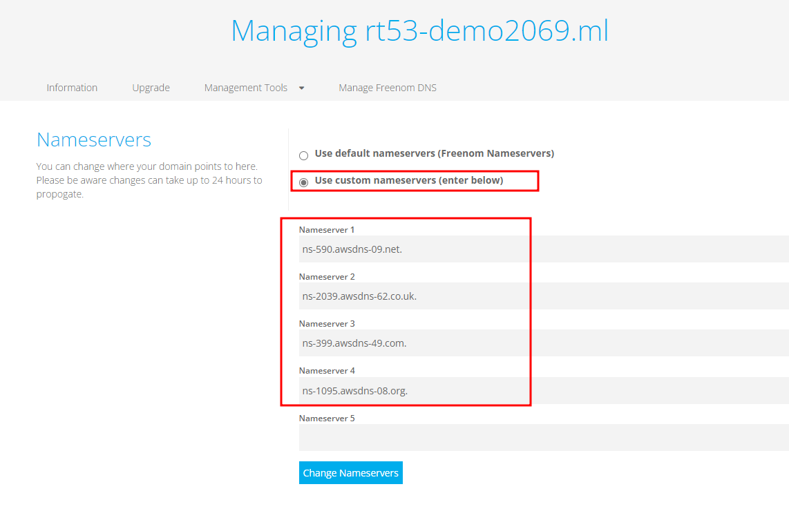 Manage Domain으로 넘어간 후, Management Tools > NameServers