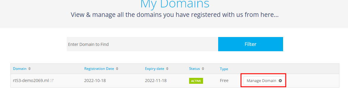 등록을 마치면 메인페이지로 리다이렉션, Service > My domain으로 가면 등록한 도메인이 보인다.