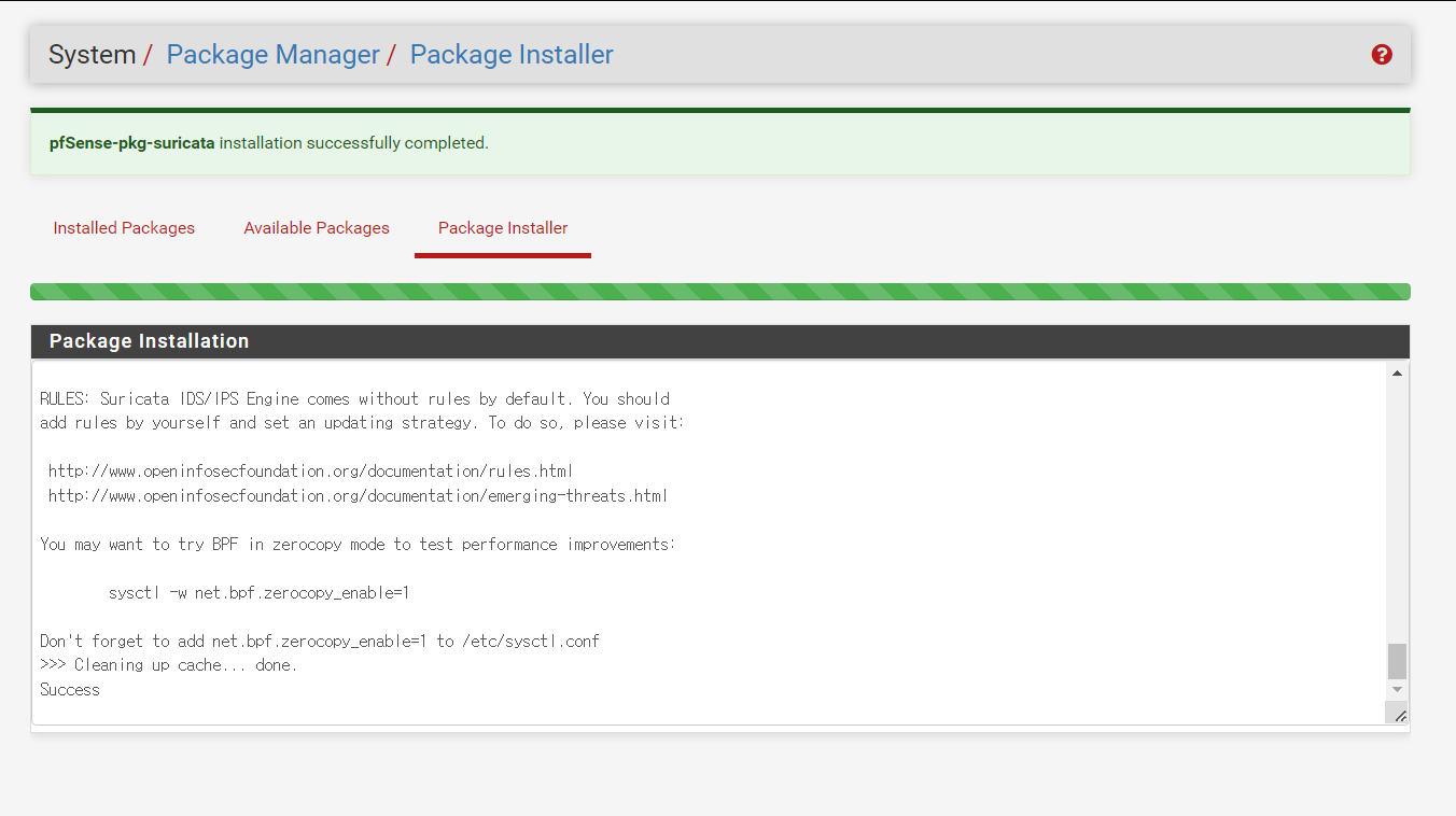 Pfsense는 package manager 서비스 를 통해 suricata 패키지의 설치를 지원한다.