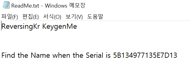 Serial이 5B134977135E7D13일때 이름을 찾으라는 문제인데, 일단 실행해보자