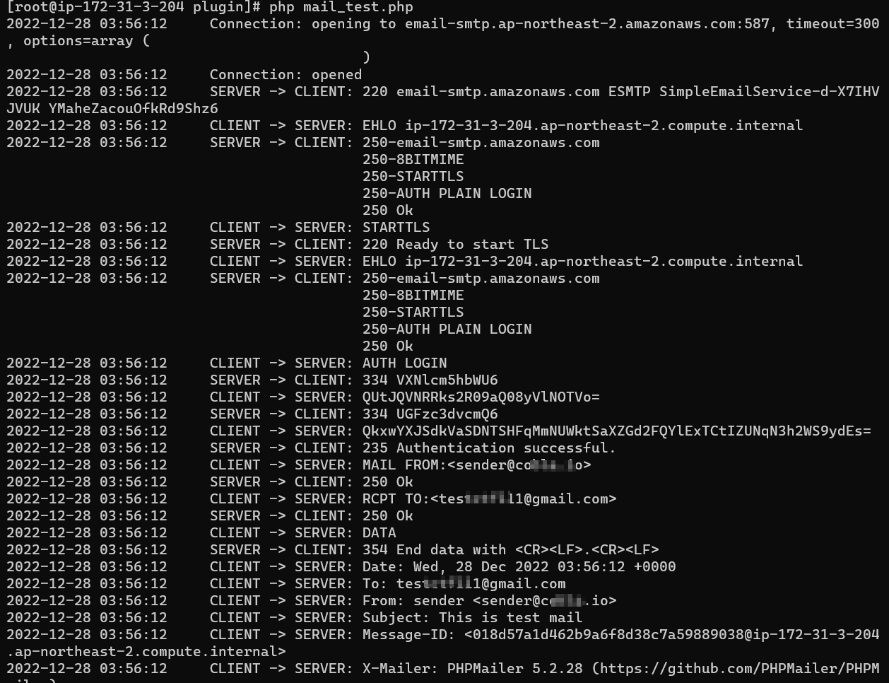 이제 이 계정을 바탕으로 실제 메일을 전송해보자, 간단하게 phpMailer를 이용해 전송해보았다.